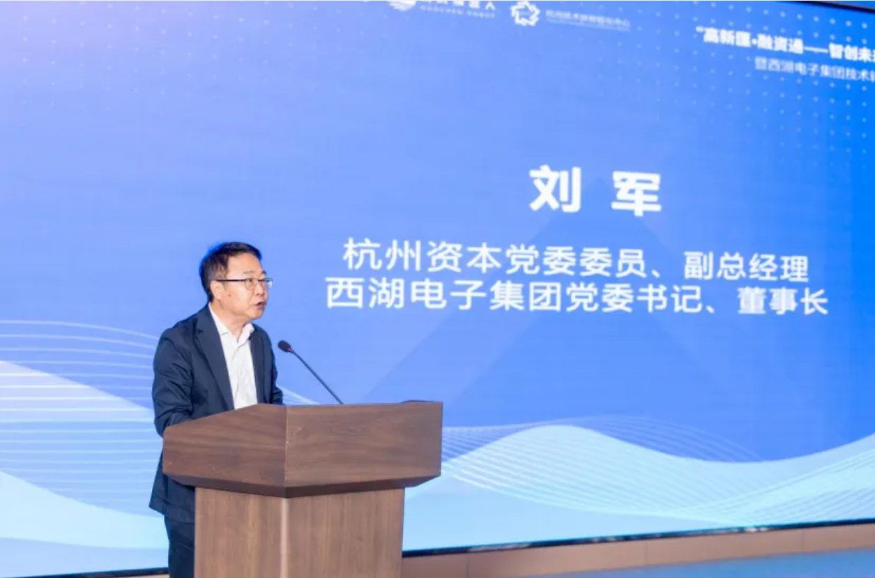 活动现场,杭州资本党委委员、副总经理,西湖电子集团党委书记、董事长刘军发表致辞,介绍了西湖电子集团锚定“全市产业园区投资建设运营平台”功能定位,全力打造一站式园区运营综合服务商的阶段性成果。并表示西湖电子集团将充分发挥园区平台优势,依托公司技术转移转化中心、国家级企业孵化器等载体,积极搭建多元化的资源对接桥梁,进一步推动技术创新与资本、产业的深度融合,助力杭州加快建设更高水平的创新活力之城。