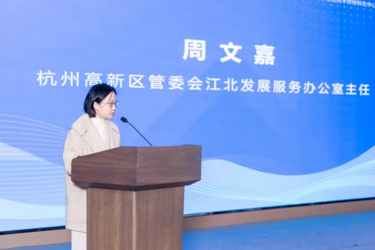 杭州高新区管委会江北发展服务办公室主任周文嘉发表致辞,介绍了杭州高新区江北区块三十余年发展历程和丰硕的培育成果,并对与会科技企业、投资机构嘉宾表示欢迎。