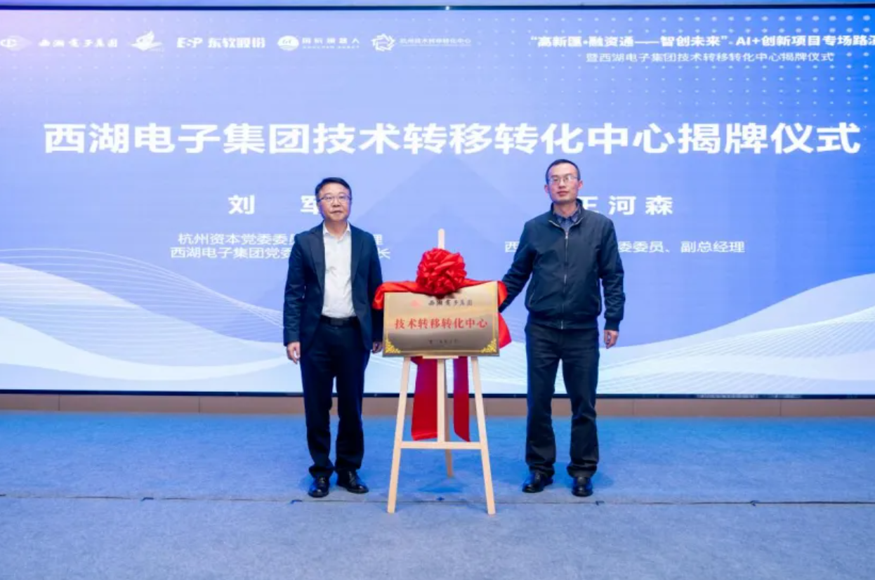 为促进AI+科技企业与资本机构精准对接,破解企业融资难题,加速科技创新成果转化,2025年11月20日下午,“高新匯•融资通——智创未来”AI+创新项目专场路演会暨西湖电子集团技术转移转化中心揭牌仪式在杭州东部软件园文三数智广场举行。