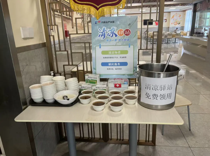 活动中,公司精心准备了防暑饮品、清凉毛巾及防暑药品,为大家在炎炎夏日中送上一份清凉与关爱。“清凉驿站”不仅是园区企业员工的休憩点,也成为快递、外卖等一线新就业群体的临时避暑港湾。