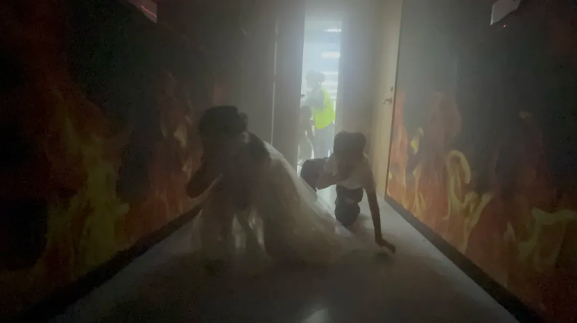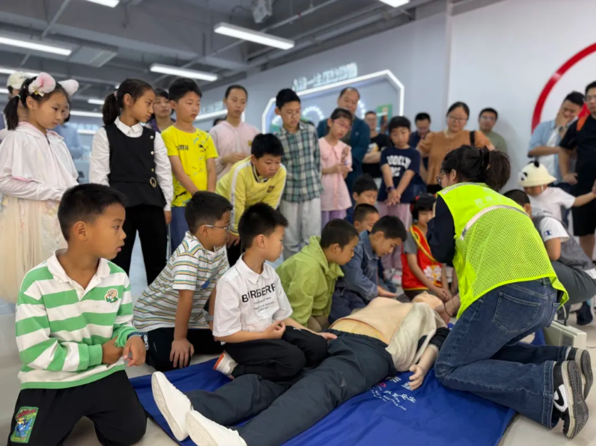 随着孩子们齐声喊出“安全童行、智启未来”的口号,活动正式启动。互动活动中大家“玩转”五大安全实景:地震体验区震动地板配合“伏地遮挡手抓牢”口诀,让避险要领秒变身体记忆;浓烟逃生通道上演30秒限时挑战,猫腰捂鼻姿势全家整齐划一;VR台风屋掀起科技风暴,孩子们在虚拟灾害中学会门窗加固技巧;AED急救区最受家长热捧,“黄金四分钟”急救秘诀通过模拟演练变得触手可及。